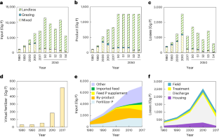 The contribution of crop and livestock production to the exceedance of the planetary boundary for phosphorus (P) in China is still unclear, despite the country’s well-known issues with P fertilizer overuse and P-related water pollution. Using coupled models at sub-basin scales we estimate that livestock production increased the consumption of P fertilizer fivefold and exacerbated P losses twofold from 1980 to 2017. At present, China’s crop–livestock system is responsible for exceeding what is considered a ‘just’ threshold for fertilizer P use by 30% (ranging from 17% to 68%) and a ‘safe’ water quality threshold by 45% (ranging from 31% to 74%) in 25 sub-basins in China. Improving the crop–livestock system will keep all sub-basins within safe water quality and just multigenerational limits for P in 2050.