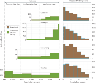 This work is the result of efforts by the Anthropocene Working Group, of which J.S. and Y.S. are members. The authors acknowledge the insights provided by J. D. Milliman, J. Zalasiewicz and C. Waters. H.W. is funded by the National Key R&D Program of China, Ministry of Science and Technology (grant no. 2016YFA0600903).