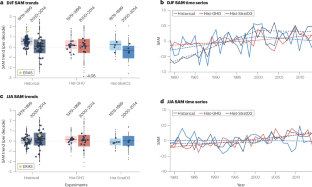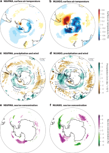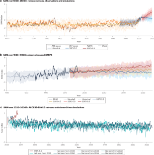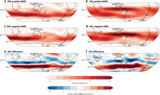 Figures 1–6 were made using data from ERA5 (ref. 197), which is available at https://www.ecmwf.int/en/forecasts/dataset/ecmwf-reanalysis-v5. Figures 1c and 4b used the Marshall SAM index4, which is available at http://www.nerc-bas.ac.uk/icd/gjma/sam.html. Figure 1c also used the US National Oceanographic and Atmospheric Administration Antarctic Oscillation198, which is available at https://www.cpc.ncep.noaa.gov/products/precip/CWlink/daily_ao_index/aao/aao.shtml. Figures 4 and 5 were made using CMIP6 data198 available from the Earth System Grid Federation https://aims2.llnl.gov/search. Figure 4a was also made using data from the Paleoclimate Modelling Intercomparison Project phase 3 data199, which is also available from the Earth System Grid Federation. Figure 4c was made using data from ACCESS-ESM1.5 emissions-driven runs76, with data available at https://doi.org/10.5281/zenodo.17364274. Figure 5e,f was made using data from the National Snow and Ice Data Center Climate Data Record version 4 sea ice concentration200, available from https://nsidc.org/data/g02202/versions/4.