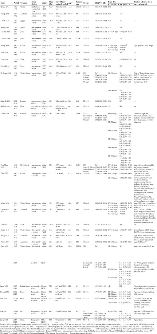 Extended Data Table 1 Characteristics of the studies included in the meta-analysis evaluating the association between screening and overall survival in patients with HCC