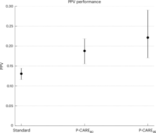 Extended Data Fig. 1 Positive predictive value of PSA in ProtecT by P-CARE values stratified by PSA values.