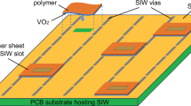 To characterize the transfer function of S parameters versus VO2 state, we measured the S parameters at several temperatures from 25 °C up to 90 °C, having VO2 through semiconducting, mixed states and metallic state. Figure 3b shows the average magnitude of S parameters for the CPW over frequencies from 60 GHz up to 110 GHz in intermediate states of VO2 from semiconducting to metallic. Despite the relatively sharp IMT by voltage actuation, VO2 transition has a tail in resistance versus temperature characteristics for a few Celsius degrees, as well as an observable slope. The evolution of the curves at higher temperatures is quite consistent with the gradual expansion of metallic domains in VO2 by temperature32. The frequency response over this range is provided in Supplementary materials note 4: CPW S parameters.