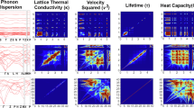 The dynamics of phonons, the quanta of lattice vibrations, play a critical role in various technologies ranging from heat dissipation in modern semiconductors1 to thermal barrier coatings in turbine blades2. In general, applications involving heat transfer require either extreme phonon impedance or conduction, which is often the performance-limiting property. Another application example of phonons is quantum communication, which can be realized by microwave-frequency phonons such as acoustic resonators3 and is of significant interest for the generation of remote entanglement and the secure transmission of information. Over the recent years, material scientists have sought new materials with excellent phonon properties through a combination of laboratory synthesis and computational prediction using density functional theory (DFT). Although the former requires decades of trial-and-error with the intuition of experienced chemists4, the latter has progressed the discovery of new materials and the understanding of microscopic phonon transport due to the availability of high-performance computers. Indeed, tremendous amount of previous studies in the thermal science have been dedicated to bulk, interfacial, low-dimensional, and layered materials5,6,7,8,9,10. Generally speaking, many investigations on thermal transport in materials have uncovered the structure-thermal property relationship, including those from bond strength, structure, and chemistry11,12,13,14,15,16,17. Additionally, unique phonon interactions may arise from certain crystals promoting anharmonicity and lowering lattice thermal conductivity (κL), including rattler atoms17,18,19, ferroelectric instability20, and electron-phonon interactions21,22. Notably, some studies also advance the theoretical description of phonon transport, e.g., addition of fourth order anharmonicity23 and temperature-dependent effective potential for temperature effects on the interatomic force constants (IFCs)12,24,25.