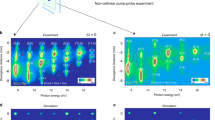 From the Drude and Drude+Lorentz fits described above we can estimate the ratio of free charge-carriers/excitons as a function of temperature for both pump-probe delays from the retrieved plasma frequencies (see Supplementary Fig. 3). As summarized in Fig. 2e, the yield of free carriers at early pump probe delays is unity independently of temperature (see green inverted triangles). To make this estimate we have considered the known variation of optical density at 387.5 nm vs temperature48, see Supplementary Discussion 2 for details. For the case of late pump probe delays, we have obtained the free carrier yield through the Mahan relationship39,49, obtaining a reasonable match between model and experiment with no fitting parameters (see blue open triangles in Fig. 2e, see Supplementary Discussion 3 and Supplementary Fig. 4 for details). In conclusion, Fig. 2e illustrates that at early pump probe delays we are photo-generating free charge carriers with unity quantum yield even at temperatures well below excitons are expected to fully populate the samples in steady state conditions. The formation of these photogenerated free carriers into excitons occurs approximately in ~300 ps, an aspect that is further validated from the analysis done as a function pump-probe delay for the trace at 4 K (see Supplementary Fig. 5 in the SI). Below we further interrogate the nature of this signal and propose an explanation about its origin.