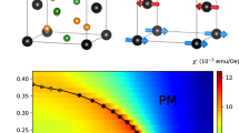 Summarizing the mean-field calculation results, Fig. 3c pictorially shows the predicted Fe3+ and Er3+ spin order in each phase. Starting from the N phase, the two sublattices of Fe3+ are antiparallel along z with zero y-component, while Er3+ spins remain paramagnetic (no order). The A phase is characterized by Fe3+ order that is identical to that of the N phase, but the Er3+ subsystem develops canted AFM order where the sublattice moments are antiparallel along x (\(\langle {\hat{\Sigma }}_{x}^{-}\rangle \, \ne \, 0\)), with canting along z (\(\langle {\hat{\Sigma }}_{z}^{+}\rangle \, \ne \, 0\)). In the S phase, the Er3+ order takes the \(\langle {\hat{\Sigma }}_{x}^{+}\rangle \, \ne \, 0\), \(\langle {\hat{\Sigma }}_{z}^{-}\rangle \, \ne \, 0\) configuration, and the staggered moment of the Fe3+ sublattices undergoes a rotation about the x axis, bringing its y-component to nonzero.
