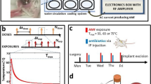 In our in vivo model, limping and piloerection were used to track joint discomfort and widespread malaise, which are frequently linked to infection49. Limping decreased significantly over time in all groups. In uninfected groups, the presence of lameness in all mice was eliminated by day 10 for both groups (Fig. 6C). For the S. aureus-infected groups, the coated group achieved a total decrease in limping from day 30, however, the untreated group had limping until the end of the study, meaning at least two mice remained lame. (Fig. 6D). In mice with uninfected implants, piloerection showed no significant variation over time (p > 0.05) (Fig. 6E). Piloerection in groups with S. aureus infection showed a significant decrease over time (ρ = −0.8814, p < 0.0001 for group of mice with uncoated implant and ρ = −0.9345, p < 0.0001 for those mice with sol–gel coated implant). Within these groups, the treatment group achieved complete elimination of piloerection at the day 30 of the study, while control group did not (Fig. 6F). These results are consistent with a previous study which demonstrated that the sooner the limping and piloerection disappear, the lower the bacterial load in the femur with the infected implant26.