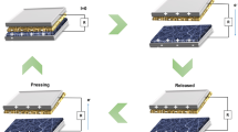 Molecular-level diffusion between adjacent printed layers results in a continuous phase matrix structure, facilitating unhindered charge migration without aggregation. This ensures homogeneous charge distribution throughout the electrode layer, providing a solid foundation for high-efficiency single-electrode TENG. Therefore, fluorinated ethylene propylene (FEP) served as the external tribo-layer in contact with the printed GP6M4 (GPM) as the electrode layer to fabricate a single-electrode triboelectric generator (GPM-F) (Scheme 1d). Leveraging the synergistic effects of triboelectrification and electrostatic induction, the system effectively converts mechanical energy into electrical energy48. When FEP comes into contact with GPM, equal magnitudes of positive and negative charges are generated on their respective surfaces during contact. Upon separation, electrons flow from the ground to the GPM electrode layer through electrostatic induction, neutralizing the triboelectric charges. Complete charge equilibrium is reached at the tribo-layer/electrode interface once full separation occurs. Subsequent contact between FEP and GPM reverses the electrostatic induction, generating an opposing current as electrons flow back to the ground. Repetition of this cycle produces alternating current (AC)49,50. As demonstrated in Supplementary Movie 1, biomechanical energy generated by human joint motion is effectively converted into electrical energy through mechanical-to-electrical transduction, with the resulting current output generating sufficient intensity to illuminate the “TENG” alphabetic display.