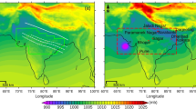 The onset of summer monsoon rainfall over the Indian subcontinent is marked by the development and intensification of cross-equatorial low-level jet (LLJ). The LLJ with a core at the height of ~1.5 km (corresponding to ~850 hPa level), is the dominant pathway of moisture transport across the equatorial Indian Ocean and the Arabian Sea onto the Indian landmass1 (Supplementary Fig. 1). The LLJ-induces strong cyclonic vorticity in the planetary boundary layer over central India that leads to moisture convergence and the formation of the monsoon trough (MT across central India to the Bay of Bengal (BoB) (e.g., ref. 41). After exiting India, the LLJ reconstitutes over the northern BoB, turning into a southeasterly flow, transporting moisture to eastern and northeastern India, and occasionally as far northwest as Pakistan. Besides these two moisture transport pathways, the negative pressure anomalies over the MT draw synoptic-scale low-pressure systems (LPS) from the BoB42, which further transport oceanic vapor across central to northwest India. The LLJ mediated moisture transport has been shown to vary on both intraseasonal to interannual timescales43,44,45. Typically, during weaker monsoon, moisture transport along the LLJ climatological axis (~15°N) weakens and the LLJ also morphs into two branches, with one branch passing south of India and the other passes through north India, with its core at ~ 25°N (Supplementary Fig. 1)40.