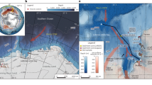 Mertz Drift on the George V Land shelf, East Antarctica, is an example for a sediment drift formed by upwelling of deep water onto the shelf and shows similarities to the drift observed on the ASE shelf. The drift is located in an ∼850 m deep trough on the shelf and covers an area of ∼400 km2,44,49. The drift is max 20 m thick and shows a well-stratified mounded structure with a steeper flank in the southwest. It appears plastered to the eastern flank of the trough. Mertz Drift is interpreted to have been formed by modified CDW upwelling onto the shelf44,45,49. Both the inflow and outflow of modified CDW entrain and transport fine-grained detritus shaping Mertz Drift. Sediment cores have shown that Mertz Drift is covered by a layer of glacimarine sediments deposited at or after the Last Glacial Maximum LGM, which, together with seismic data, indicate that Mertz Drift was formed in pre and/or at the LGM times and provides evidence for deep water upwelling onto the shelf during these times45. The sediment drift observed on the ASE shelf has a similar spatial extent as Mertz Drift and has also been formed against a south- and westward sloping seafloor (see Fig. 3).