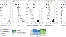 Soil pore waters were collected on Gradient site at Eight Mile Lake (EML) catchment (63.87oN; 149.25oW). The site is located at ~700 m elevation on a gentle (~4 degrees), north facing hill slope surrounded by the northern foothills of the Alaskan Range in Interior Alaska. The geology is composed of Tertiary sedimentary rocks, overlain by gravelly glacial till and aeolian silt including the Pliocene Nenana gravel. The catchment lies at the continuous to discontinuous permafrost boundary and soils are near the point of thaw because of their elevation and geographic position33. The soils contain permafrost within 1 m of the surface, characterized as Gelisols34. Gradient site at EML is a natural gradient in permafrost thaw and thermokarst development. The difference in thaw depths across Gradient site results from the redistribution of water into subsided areas which increases soil thermal conductivity and increases ground heat fluxes within depressions13,14. The permafrost degradation at Gradient site is defined on the basis of duration of permafrost thaw which is based on observations of ground subsidence, thaw depth, and ground temperature measurements14,35,36. The site is characterized by an area of minimal permafrost degradation with less-disturbed moist acidic tundra where the vegetation is dominated by tussock forming sedge Eriophorum vaginatum; an area of moderate permafrost degradation with shallow thermokarst depressions (<0.5 m deep) that have developed since 1990 and the tussock tundra is dominated by sedges; and an area of extensive permafrost degradation with thermokarst depressions (0.5–1 m) that have developed over at least the past 30 years (Osterkamp et al., 2009), with tussock tundra dominated by shrubs (Vaccinium uligonosum) and mosses (Sphagnum spp.)13.