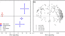 Organic carbon stock calculations were performed on ‘default’ (Min 1, Min 3, Mod 1 and Ext 1) and ‘degraded’ (Min 2, Mod 2, Mod 3, Ext 2 and Ext 3) soil profiles. Total organic carbon (TOC) content was measured using C, N, S Vario El Cube and expressed in percentage in reference to the dry weight. Bulk densities (BD) were estimated based on measured TOC content (S.I. Data 2) and data from Plaza et al.18 a quadratic model was used to relate bulk density to TOC content based on 443 paired measurements from Plaza et al.48 (CiPEHR site from 2009–2010–2011–2013 and 2017). The model used is: BD = b0+b1x+b2x2 where x represents the TOC expressed in g kg−1 and b0 = 1.08, b1 = −3.46 × 10−3 and b2 = 2.81 × 10−6 (R² = 0.72). Lower and upper estimated BD values were inferred based on the confidence interval of 95%. All parameters (BD, TOC, depth) are available from Plaza et al.18. These organic carbon stock calculations were performed on the 0–1 m soil profile in order to estimate the proportion of organic carbon stock in the soil layers that are unfrozen before snowmelt (0–20 cm depth) relative to the 0–1 m organic carbon stock.