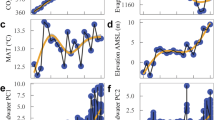 Climate data covering the period from the early 1910s to 2018 were derived through interpolation from the three most representative weather stations in the vicinity of each sampling area using locally weighted regressions, including the effect of altitude. All observations of weather variables were tested for outliers and broke through a detailed homogenization sequence, and gaps in missing data were filled76. Resulting climate information, i.e., air temperatures, precipitation, and simplified soil water availability indicator (self-calibrated Palmer Drought Severity Index or PDSI77), were used to derive environmental variables representing climatic conditions at sites over the vegetation season (May-August) (Supplementary Data 1).