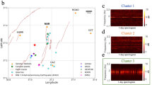The small number of tremor bursts associated with peak Love-wave amplitudes raises the suspicion that these signals might have been mis-identified. The tremor signal is low-amplitude, and its duration and frequency content may sometime resemble the ones associated with man-made signals excited by freight trains and trucks41. The Jordan Valley is a sparsely inhibited, train-less area, and so it is unlikely that the signal is due to train or truck traffic. The area does, however, contain a number of active quarries which regularly use explosives for mining purposes, thus producing blasts that are well-recorded across the network. These blasts sometime occur around the same hours as the tremor identified here (12 am local time). However, for the reasons listed below, I consider the possibility that the signals reported here were caused by quarry blast to be unlikely. First, the detected signal coincided twice with the Love wave maximum amplitudes within 15 s. Second, the signal can be correlated among distant accelerometers located tens of km apart. Third, the signal locations are more consistent with a deep source than with a shallow source, in an area devoid of known active quarries. And forth, the spectra of registered query blasts differ significantly from the spectra of the signal I associate with deep tectonic tremor. In light of these observations, I conclude that the signals reported here were excited by a tectonic source. In Section “Triggered tremor ground-motion spectral characteristics” I show that the significant differences between the temporal and spectral attributes of these tremor signals to the attributes of local microearthquake seismograms also rule out the possibility that the signals I identify as tremor were actually due to an instantaneously triggered local earthquakes.