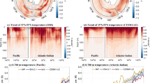 The Southern Ocean plays a crucial role as a primary source of reduction in global TOA incoming energy in response to mitigation efforts in the late 21st century. About 66.62 \(\pm\) 33.51 TW heat is locally released to the atmosphere via negative OHU. Meanwhile, the Southern Ocean imports heat from the Atlantic and exports heat to the Indo-Pacific, resulting in a net energy export of 42.26 ± 38.22 TW at the basin boundary. Both the interbasin heat exchanges and changes in OHU contribute positively to the decrease of OHS over the Southern Ocean, leading to a remarkable reduction of 108.36 ± 60.90 TW (Fig. 5), along with a subsurface cooling in the upper 800 m over the basin (Supplementary Fig. 7a).