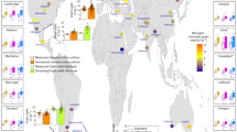 More specifically, the agronomic management level of ‘Farmer practice’ (FP) referred to the field management measures of local farmers, representing the typical local agricultural practice. A total of 2–5 villages were randomly selected in the county where the experimental sites were located, and several farmers were randomly selected in each village for interview, mainly about their management practices for winter wheat production. The ‘High-efficiency practice’ (HEP) level was the optimized local agronomic practices by researchers based on previous cultivation experiments to ensure higher crop yields and higher resource utilization efficiency. The optimized management strategies included appropriate planting density and row spacing, suitable N fertilizer amount and application schedule, and supplementary irrigation when needed100,101,102. The ‘High-yield practice’ (HYP) level referred to sufficient irrigation and N fertilizer for the high-yield and high-efficiency management measures, ensuring that crop plants were not subject to water and N stresses in growth, and achieving the highest yield that could be obtained at the experimental sites. And the ‘Basic soil fertility’ (BSF) level referred to the final yield that was obtained without any irrigation or fertilization during the whole growing season of winter wheat.