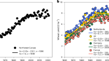 Long-term measured daily weather data were crucial for robust simulation of the phenology dates and yields of winter wheat. The meteorological data required for model simulation included maximum and minimum temperature, wind speed, and solar radiation. Daily weather data were obtained for all weather variables (except for solar radiation) in 60 historical years (1961–2020) from the National Meteorological Information Center (http://data.cma.cn/) of China Meteorological Administration for the selected representative weather stations and the experimental sites. Following previous research, the solar radiation data were calculated based on daily sunshine hours in the meteorological data106. The weather data used in this study underwent quality control methods and were widely applied in past relevant studies.
