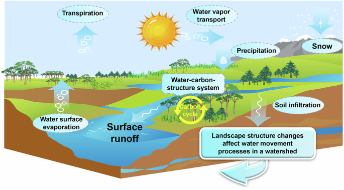 Over half of the world’s population resides in areas governed by continental monsoon climates, where monsoon systems serve as the primary driver of precipitation, and its distinct seasonal timing controls the dominant influence of hydrological supply on vegetation community structure and the carbon source–sink processes1,2. As human activities increasingly modify the underlying surface, changes in the direction and pace of terrestrial ecosystem succession are driving shifts in both landscape configuration and ecosystem functioning. Nevertheless, past research has primarily concentrated on describing the link between singular hydrological factors and landscape configuration, while relatively little effort has been devoted to examining the interactive feedbacks among hydrological processes, carbon cycling, and types of river basin ecological structures, or their joint regulation of ecosystem productivity3,4,5. This study defines this effect as the water-carbon-structure-function nexus, and understanding this nexus is essential for predicting ecosystem responses to environmental change, including responses to anthropogenic activities and climate-change drivers.