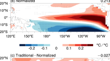 Atmospheric CO2 concentrations remained stable55 (~226–239 ppm; Fig. 3j), and their warming influence was muted during the B–A by concurrent stability or cooling in WPWP/EEP SST stack53 (Fig. 3h) and Borneo land temperatures52 (Fig. 3e). The AMOC cannot be a primary driver: similar-amplitude AMOC variations in prior D–O interstadials67 (Fig. 3i) lack temporal correspondence with enhanced ENSO variability. Consequently, the abrupt amplification of ENSO variability during the B–A aligns with Laurentide ice-sheet retreat past a critical threshold (e.g., meltwater pulse 1 A)68,69, as simulated in the transient model13. During the B–A, a threshold response at intermediate ice-sheet heights induces two key processes: (1) a northward shift of the NH westerly jet stream70,71,72, generating anomalous easterly winds that extend to the NE tropical Pacific. These winds are amplified by wind-evaporation-SST (WES) feedback73 and propagate equatorward. (2) Rapid sea-ice expansion over the North Atlantic and North Pacific subpolar regions drives regional cooling72,74,75. This cooling may initiate subtropical North Pacific anomalies that subsequently influence the tropics via WES feedback. Both processes induce pronounced cooling north of the equator in the eastern Pacific, reducing the north–south cross-equatorial SST gradient and weakening the region’s annual cycle13. The attenuated annual cycle may then intensify ENSO activity through the nonlinear mechanism of frequency entrainment11,76,77,78—ENSO may transition from its natural oscillatory mode to a more annual frequency when the annual cycle is sufficiently strong, thereby reducing interannual variability. Conversely, weakening the annual cycle relaxes this phase locking, enabling greater ENSO-driven interannual variability. Given the asymmetric intensity distribution of ENSO events, where El Niño episodes are typically stronger than La Niña, increased ENSO variability tends to favor El Niño-like climatic conditions.
