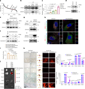 Extended Data Fig. 6 VPS35 assists DDAH1 secretion and integrin facilitates DDAH1 lung targeting.
