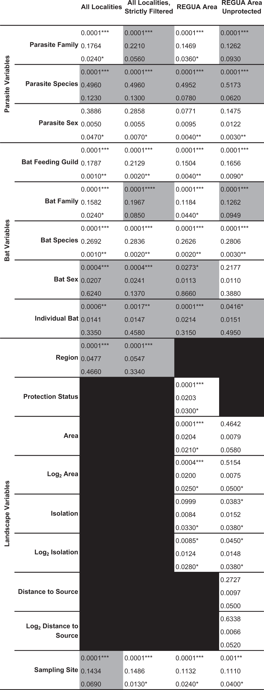 Table 2 Univariate PERMANOVA analysis of parasite, bat, and landscape influences on microbiome variation.