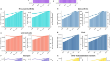 Recent research has highlighted that biological aging is linked to musculoskeletal dysfunction11. A study has shown that senescent cells constitute integral components of the skeletal muscle regenerative niche, inhibiting regeneration across all life stages12, which may contribute to the onset of musculoskeletal disorders. While specific aging mechanisms have been connected to certain musculoskeletal diseases13,14, comprehensive research examining the broader impacts of aging on these disorders remains limited. Thus, it is imperative to quantify the effects of aging on the onset of musculoskeletal disorders.