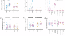 It has been previously demonstrated that longer intervals between exposures, whether through natural infection or vaccination, may result in enhanced potency and breadth of neutralizing antibody responses18,19,20. Compared to bivalent recipients, the non-recipient group have a greater interval between the XBB.1.5 monovalent vaccine and prior vaccination (mean of 361.2 ± 48.3 days versus mean of 706.9 ± 58.9 days). It is therefore of interest to evaluate the contribution of these longer intervals to the increased boosting observed in bivalent non-recipients. However, despite being statistically significant, representative multiple predictors linear regression modeling on EG.5.1 titer fold-change reveals that bivalent receipt and vaccine interval are highly collinear variables within our cohort as evident in variance inflation factors >10 and R2 > 0.9 between variables (Supplementary Fig. 3). In other words, those who opted to not receive the bivalent vaccine reliably had longer rest intervals between vaccines. This is an expected problem due to the inherently intertwined nature of these variables in real-world vaccinated communities and indicates that regression modeling within this cohort cannot be used to fully isolate the independent effect of vaccine intervals on antibody boosting. However, it is important to emphasize that ancestral titers are independently back-boosted within each participant group, providing evidence that immune imprinting persists in the context of XBB.1.5 monovalent vaccination regardless of the differences, including vaccine intervals, between the two groups and is likely remnant of original ancestral monovalent vaccines (Fig. 1b–e).