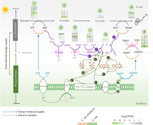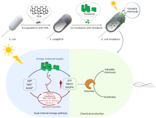 An, J., Chen, T., Ge, F. et al. Dual-channel energy pathway combining energy molecule supply and electron transfer to support solar-to-chemical production in an E. coli–thylakoid hybrid. Nat. Synth 4, 1408–1421 (2025). https://doi.org/10.1038/s44160-025-00853-0