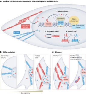 Reduced expression of smooth muscle α-actin (αSMA), a crucial piece of the vascular smooth muscle cell cytoplasmic contractile apparatus, contributes to these cells’ dysfunction in vascular diseases. αSMA is now shown to localize in the nucleus and bind chromatin-remodeling complexes to regulate smooth muscle contractile gene expression.