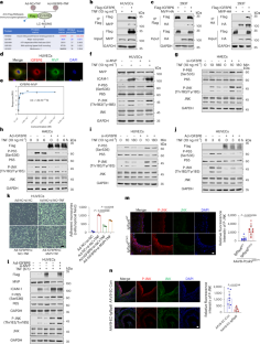 a, In HUVECs, Co-IP experiments were performed on MVP and ASK1 (n = 3). b, HUVECs were treated with adenovirus to overexpress IGFBP6. After 42 h of treatment, TNF-α was added for 6 h. After that, flag-tagged IGFBP6 was pulled down and ASK1 (n = 3) was detected. c, Representative Co-IP and Western blot assays revealed dimerization of ASK1 in HEK293T cells transfected with indicated plasmid vectors (n = 3). d, Molecular docking was performed using Alphafold3 to predict the binding sites of IGFBP6 and MVP. e, Representative Co-IP and Western blot assays showing the binding domains of IGFBP6 to MVP in HEK293T cells (n = 3). f, HUVECs were treated with IGFBP6 and mutated IGFBP6 adenovirus for 42 h, followed by TNF-α for 6 h. The expression levels of Flag, VCAM-1, ICAM-1 were detected by Western blot (n = 3).