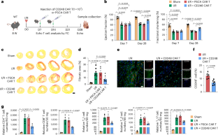G.L., C.N., Jiacheng Wang and F.Z. performed mouse in vivo surgeries and downstream experiments. G.L. isolated NMCFs, and G.L., F.L. and S.Y. performed downstream in vitro experiments. G.L. isolated spleen T cells, and performed all CAR T cell therapy-associated experiments. G.L., H.L. and J.Z. performed Sirius red staining and analyzed images. Y.Z., J. Cai, Y.S. and Z.Z. performed immunofluorescence staining and analyzed images. Z.F., L.W., M.L. and S.S. performed scRNA-seq and spatial transcriptomic analysis. B.W., Y.L. and J.H. analyzed the data. X.X., Y.X., J. Chen, W.Z. and Y.W. contributed to the experimental design and manuscript modification. Jian’an Wang and X.H. designed the experiments, supervised the study and drafted and revised the manuscript. All authors read and approved the final manuscript.