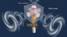 The first solid-state maser that could operate at room-temperature was reported in 20124, using photoexcited triplet-states in organic pentacene molecules housed in a microwave cavity containing a dielectric ring of sapphire and a pump laser. The pentacene molecules were stimulated at 585 nm using a dye laser (rhodamine 6G), generating pulses of 0.5 J at 1 ms pulse duration. This produced a burst of maser emission that lasted for 350 µs. The maser resulted in a peak microwave power output of 0.1 mW (−10 dBm), 100 × 106 times higher than the hydrogen maser, with an optical pump threshold power of around 230 W. There have been subsequent reports of room-temperature masing using PcPTP7,8,9 and similar media10, pumped by a pulsed optical parametric oscillator in the range 570–620 nm, itself pumped by a frequency doubled pulsed neodymium-doped yttrium aluminium garnet (Nd:YAG) laser. A room-temperature maser was also demonstrated using an ensemble of nitrogen-vacancy centres in diamond11. In that case, the pump was a frequency-doubled Nd:YAG laser operating in continuous wave at 532 nm. In all these examples, the excitation source typically takes the form of a high-power laser due to the relatively high pump power thresholds.