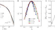 All of the quantitative results in this work were obtained from the experiments conducted in Caltech’s Lucas Adaptive Wall Wind Tunnel, a closed-loop wind tunnel. As discussed previously, our experiments were performed in the wake of a bluff body at a mean flow speed of 6.81 m/s, which corresponds to a Reynolds number of ReD = 230,000 over the bluff body. The bluff body consisted of a cylinder with a diameter of 30 cm with a normal flat plate fixed asymmetrically that increased the effective diameter to 53 cm, as shown in Fig. 1C. This construction is used to encourage vortex dislocation which results in less regular vortex shedding events54. Further, the bluff body was mounted to the walls of the tunnel with elastic cords to allow for dynamic oscillations which may also encourage less regularity in shedding events (see Methods for details).