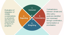 Implementing global ocean sustainability goals requires effective coordination among different policy arenas, and climate-smart MSP must contribute to that integration (component 9; Fig. 1). Until recently, there has been a lack of mutual recognition between, and integration of, MSP policies and climate policies3. For example, the need to address climate change is not sufficiently imprinted in national and regional MSP policies such as the European MSP Directive (the major MSP policy document in the European Union)112. In the latter, while it is stressed that plans are to contribute to climate resilience and consider climate-related long-term changes, no procedural steps are identified. Conversely, MSP (and broader ocean governance) is largely absent from climate strategies and policies. In effect, despite the recognized potential of the ocean to address climate change, only a minority of countries discussed ocean actions as climate solutions in their first round of Nationally Determined Contributions (NDCs)113,114 (national climate goals under the Paris Agreement). This misalignment between policies makes it more difficult to ensure that climate change is properly integrated as a relevant factor in MSP processes. Yet, new opportunities emerge as the link between MSP and NDCs gains recognition6,8. The World Bank identified that MSP can support the implementation and strengthening of NDC commitments6, for example, by identifying spatial opportunities for ocean-based climate solutions (see component 8) and how to implement NDCs in blue sectors such as ocean energy, fisheries, aquaculture, shipping, and conservation. It further pinpointed that entities responsible for MSP can identify appropriate governance and regulatory frameworks and institutions dealing with climate change, and actively support their inclusion in MSP processes6. At the same time, the UN Global Compact identified the important role of MSP as a holistic framework for unlocking the potential for ocean-based climate mitigation and adaptation actions, reconciling different policy priorities (e.g., sustainable food production, energy security, biodiversity), and achieving the objectives of the Paris Agreement8. Mutual recognition between climate and MSP frameworks must be continuously pursued to support the development of climate-smart ocean plans.