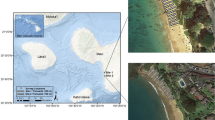 To relate our biological and environmental data to human presence, the cumulative number of snorkelers and waders in each sector (Fig. 1) was also quantified during data collection through four 10-min counts per survey day, spaced roughly evenly throughout the morning, that were later averaged. Box office counts (i.e., total daily visitors to the bay) were separately acquired from the City and County of Honolulu’s Department of Parks and Recreation to give an estimate of the daily visitor load.