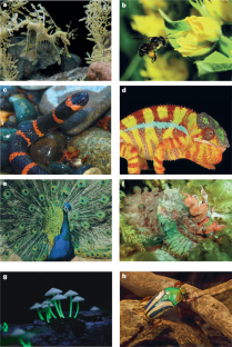 Organisms have evolved diverse colouration strategies, using pigments, bioluminescence and structural colouration to enhance survival and reproductive success.
