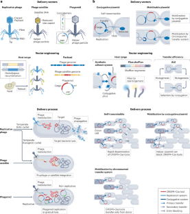CRISPR–Cas tools can be delivered to target bacteria by phage particles or plasmid conjugation.
