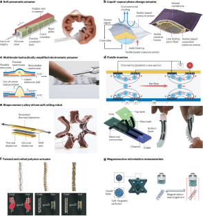 Sanchez, V. et al. Smart thermally actuating textiles. Adv. Mater. Technol. 5, 2000383 (2020). This article introduces thermally actuated textiles that rely on liquid–vapour phase change to enable tetherless wearable soft robots with integrated sensing and closed-loop control.