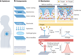 Wearable biosensors can continuously monitor disease biomarkers, therapeutic drugs and health-related analytes to provide real-time diagnostic insights. The wearable biosensor Aptalyzer integrates hydrogel microneedles and an electrochemical aptamer-based biosensor to assess biomarkers in the skin interstitial fluid.