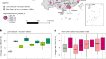 An additional and related anchor point for resilient climate action through crises may be leveraged through sustainability co-benefits (for example, refs. 41,43). For example, we find that cities that experience more climate-related health issues are more likely to report increased climate action and finance during the pandemic and to have implemented more green recovery interventions. Linking climate and health risks and benefits may thus offer further support for increased climate action41,43; other sustainability co-benefits that may further enhance climate action include adaptation, ecosystem restoration and sustainable mobility (for example, refs. 44,45).