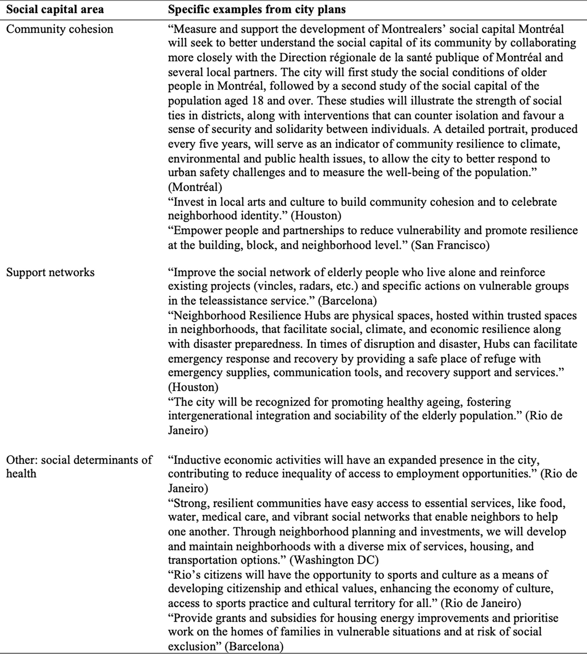 1. This table provides descriptive examples of social health strategies from the city climate action plans.