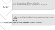 Our study demonstrated that Excimer-MLR further improves multiple parameters of visual function after treatment with current retinal therapies for macular disorders. Anatomical success of macular hole surgery is very high, but functional success with logMAR BCDVA improvement ≥0.3 is only about 43% for large holes [24]. Excimer-MLR beneficially added to the success of macular hole surgery by producing additional logMAR BCDVA improvements of 1.20 and 0.52, with improved contrast sensitivity, central fields and retinal sensitivity, in the two eyes that had undergone surgical repair two and five years earlier, respectively. Anti-vascular endothelial growth factor (anti-VEGF) treatment of neovascular AMD inhibits growth of neovascular lesions and resolves exudation to improve and maintain vision, but, despite resolution of retinal oedema, macular atrophy or subretinal fibrosis causes poor residual acuity or a further decline in vision in many eyes [25]. Excimer-MLR produced additional logMAR BCDVA improvements (0.60 and 0.52 at 3 months; 0.64 and 0.42 at 18–24 months), with improved contrast sensitivity, central fields and retinal sensitivity, in the two eyes with neovascular AMD and GA without persistent intraretinal or subretinal fluid and without any anti-VEGF treatment from at least 6 months prior to Excimer-MLR through the entire post-operative follow-up period of our study. Intravitreal complement inhibitor therapies (IVCI) successfully slow anatomical progression of geographic atrophy, but treating physicians have highlighted that lack of visual benefits has limited their acceptance [26, 27]. Excimer-MLR produced clinically meaningful improvements in visual function, with no eyes losing BCDVA compared to baseline at 18–24 months, in all five eyes with geographic atrophy, with or without concomitant neovascular AMD. None of the eyes with GA in our study received IVCI before Excimer-MLR. However, vision improvement from Excimer-MLR performed before or after IVCI has the potential to improve acceptance and compliance with IVCI. Excimer-MLR performed two days apart in each eye at about one week after bilateral IVCI in a patient with GA and very poor vision (BCDVA OU: 20/800; logMAR 1.60) gained 35 and 30 ETDRS letters with disappearance of central negative scotomas at 4 and 6 days after Excimer- MLR in the first- and second-treated eyes, respectively (unpublished data, Serdarevic and Yavitz).