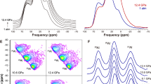 , correlates with the volume of glass having a power law function20,21,22, which can be conveniently used to reflect the relative volume (density) change as a function of pressure. Figure 2 shows the inverse main amorphous diffraction peak position,