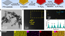 Morphologies of the photoanodes prior to and after the ion exchange reactions with different ALD ZnO cycles are shown by SEM images in Fig. 3. The original TiIO surfaces are smooth. After ALDIER, the open surfaces are coated with a granular layer of CdSe. The SEM image in Fig. 3e provides an entire cross-sectional view of the structure with 60 ALD cycles (larger scale SEM images are provided in Supplementary Fig. S2). Clearly the ion exchange reactions proceed along the whole depth of 10 μm, owing to the effectiveness of ALD in creating conformal coatings on the surfaces of high aspect-ratio nanostructures. The morphology is further characterized using transmission electron microscopy (TEM). Figure 4a provides clear evidence of the attachment of nanoparticles on the available surfaces of TiO2 pores. High-resolution TEM image in Fig. 4b shows that the particles are crystalline and the lattice spacing can be indexed into (0-11) and (1-1-1) planes of hexagonal CdSe. Pure elements of Cd and Se are confirmed by the X-ray energy dispersion spectrum shown in Fig. 4c.