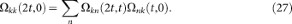 for the propagators which are dependent on the time difference. The maximum occurs when Ωkk(t) = 1 and the difference between temporal correlations becomes