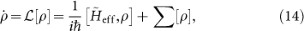 To apply this to the system we have been discussing we must formalize further how, for large N, the system can be mapped to an effective two-level system [as shown in Fig. 2(c)]. The dynamics of this effective model can be described by a Markovian master equation: