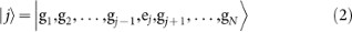 describes the state with the jth TLE being in its excited state. Including the coupling between the TLE array and the 1D radiation fields, the state vector of the total system at time t can be written as: