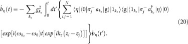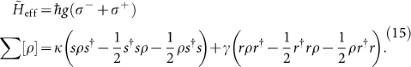 , i.e. no excitation in the Dicke state or in the resonant state k0. In the self-energy Σ[ρ], the s = |vac〉〈k0| operators describe the loss of the photon from the system with rate κ and the