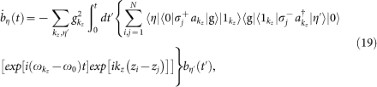 Similarly, from Eq. (20), the dynamical evolution of the Dicke state |N − 1〉 (dropping the k0 subscript for brevity) can be written as: