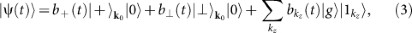 denotes one photon in the kz-mode and |g〉 is the TLE ground state. Note that the superposition state