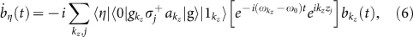 In the experimental realizations discussed below, there are several experimentally-accessible systems that can mediate the one-dimensional coupling between two-level emitters and the photon fields. To show that this effect can be realized in a solid-state environment, we first consider in detail how to use a multiple-quantum-well (MQW) structure as the two-level-emitter array. In such a MQW structure, each single quantum well can be regarded as a two-level emitter. The quantum-well exciton will be confined in the growth direction (chosen to be the z-axis) and free to move in the x-y-plane. Due to the relaxation of momentum conservation in the z-axis, the coupling between the photon fields and the quantum wells is one-dimensional. Therefore, if we assume a incident photon with wavevector k0 on the MQW along the z-axis, the interacting Hamiltonian can be written exactly the same as the form in Eq. (4). Furthermore, quantum wells have the remarkable advantage that the phase factor ik0zj in